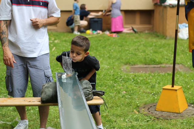 The cub scouts held the annual Raingutter regatta (a regatta is a series of boat races) at the end of June. The boys made boats out of plastic water bottles and raced them against each other.